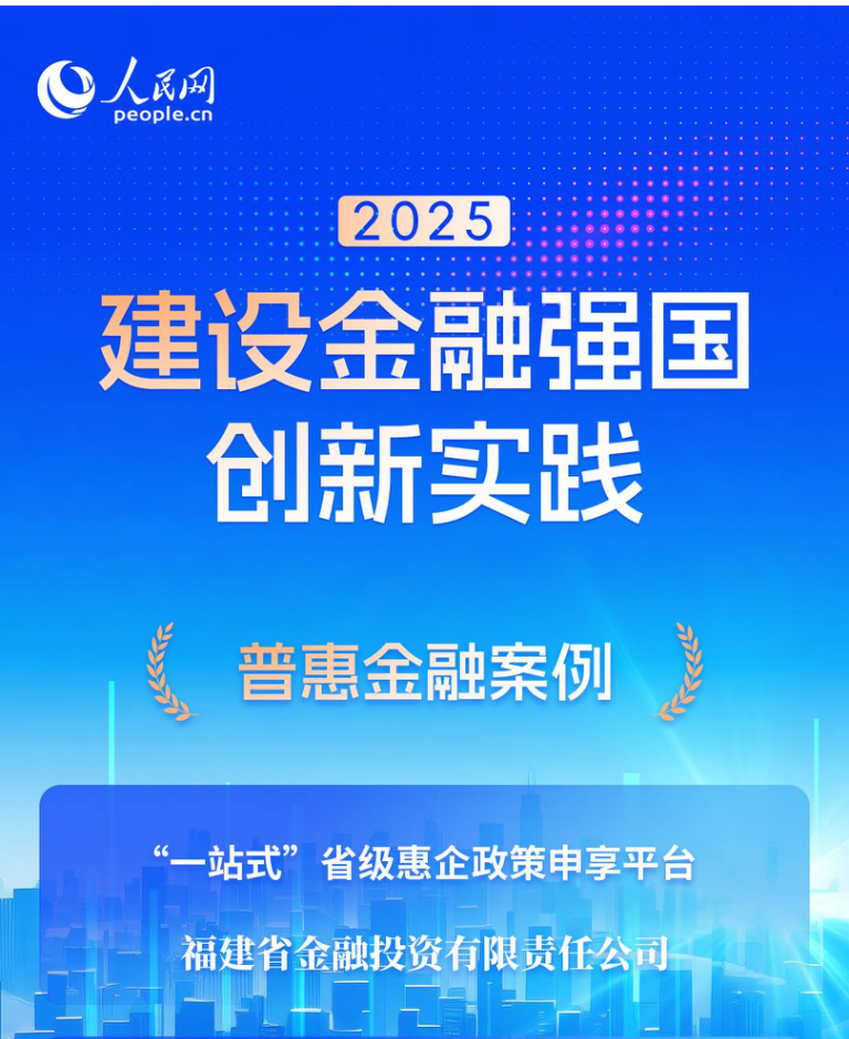 12月30日,人民网2025建设金融强国创新实践案例名单公布,福建金投“一站式”省级惠企政策申享平台成功入选普惠金融案例名单,展示了平台在推动政策精准落地、优化融资营商环境等方面的实践成果。