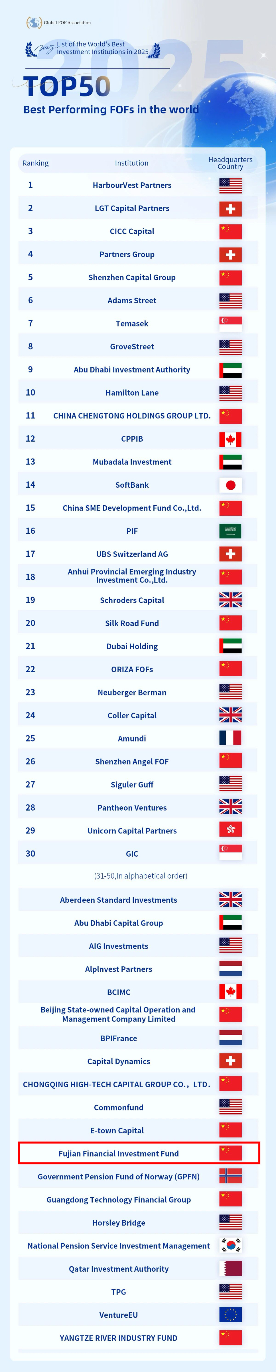 福建唯一上榜!福建金投基金获评2025“全球最佳母基金TOP50”